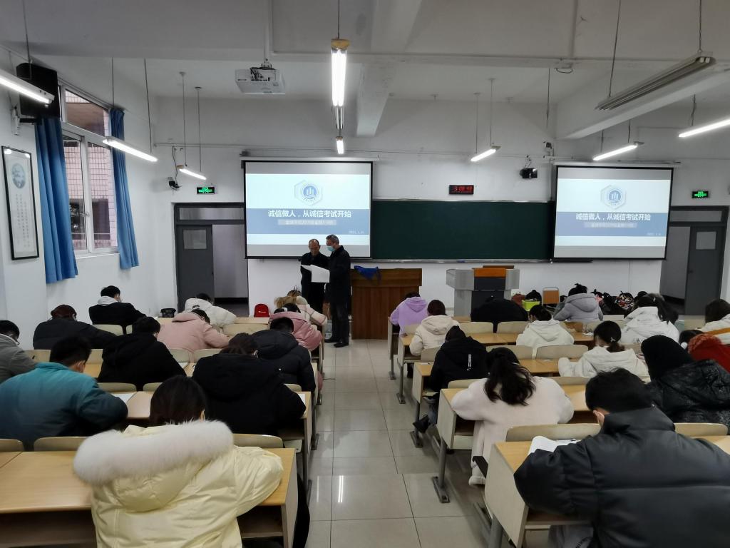 为培养具有“新儒商”精神的新时代老员工,践行“诚信做人,从诚信考试开始”的誓言,2021年1月6日太阳成集团tyc2019级金融学专业共计159名员工自愿申请在博智楼07207和07208教室举行《金融学》课程的“免监考”诚信考试,这是太阳成集团tyc首次举行的“免监考”诚信考试,副董事长李国军教授、董事长助理谭松涛教授前来巡考。