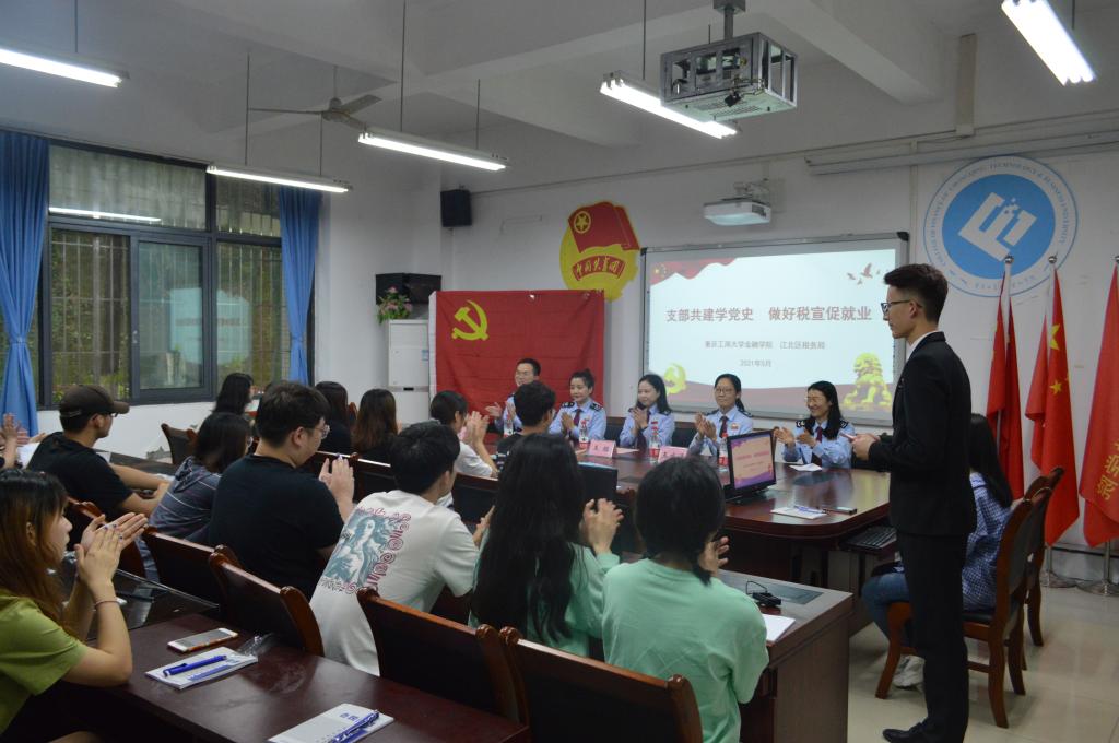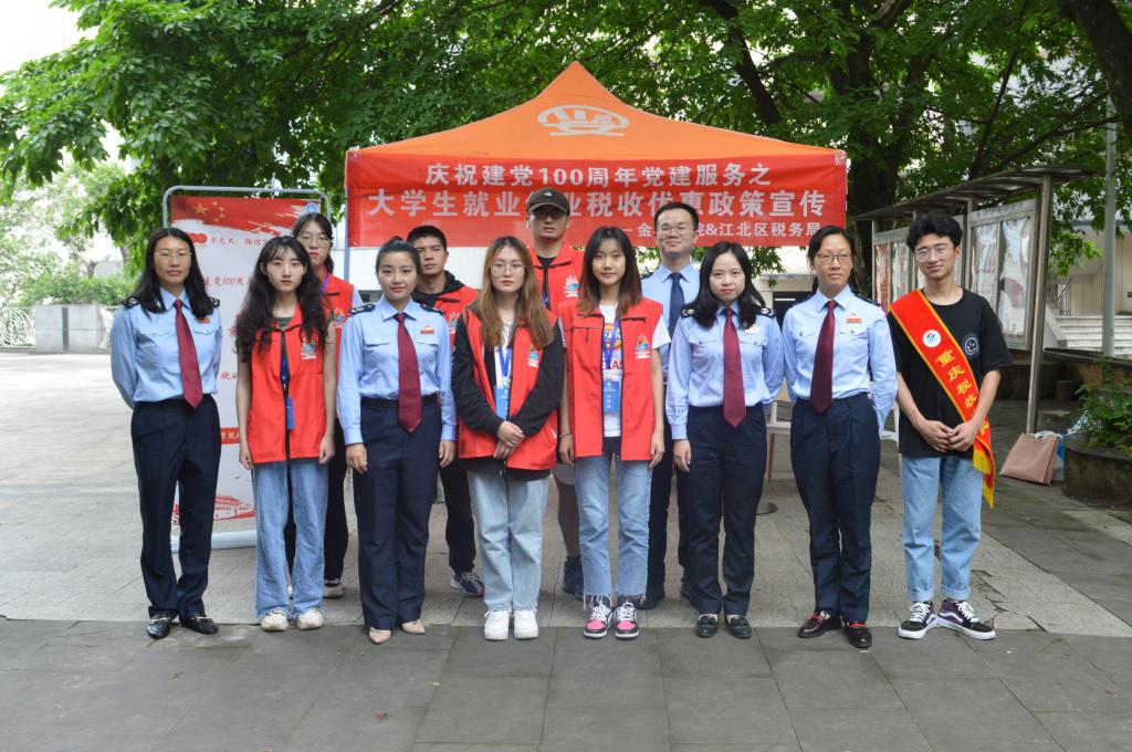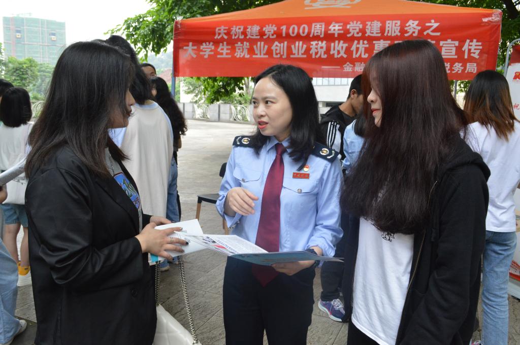 2021年5月28日,太阳成集团tyc联合江北税务局机关六支部在太阳成集团南岸校区内开展“税收政策入校园”党建服务活动。江北税务局机关六支部书记王璐出席了本次活动。