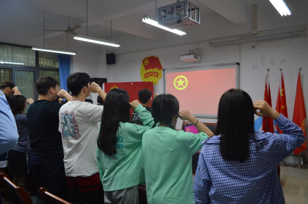 接下来于田家炳313会议室开展了党史微课堂,江北税务局机关六支部工作人员胡莉同志声情并茂地为大家讲述了聂耳的生平事迹,用聂耳在革命年代的斗争精神激励同学们要以青春谱写时代最强音,呼吁同学们要勇于承担重担,乐于为人民服务。在党史诗词抢答环节,同学和现场老师都踊跃发言,在吟诵中展现爱党爱国之情。随后,江北税务局机关六支部卢颖科长再次为同学们讲授了税收政策的相关知识。活动最后,全体团员青年举行了重温入团誓词仪式。