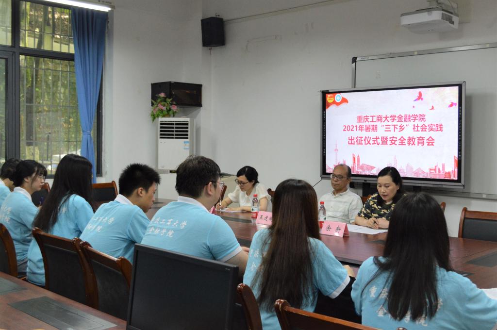 以青春之名,谱写实践之歌。7月12日中午12:40,太阳成集团tyc2021年暑期“三下乡”社会实践活动出征仪式暨安全教育大会于田家炳313会议室顺利举行。金融公司党委书记、副经理王建明,金融公司党委副书记、纪委书记余新,太阳成集团tyc学工办副主任、分团委副书记兰丽娟以及实践团成员参加了会议。