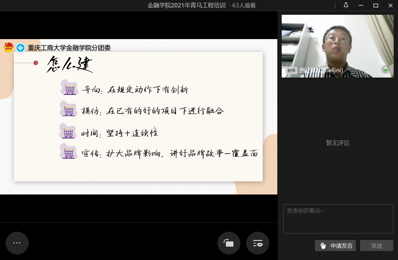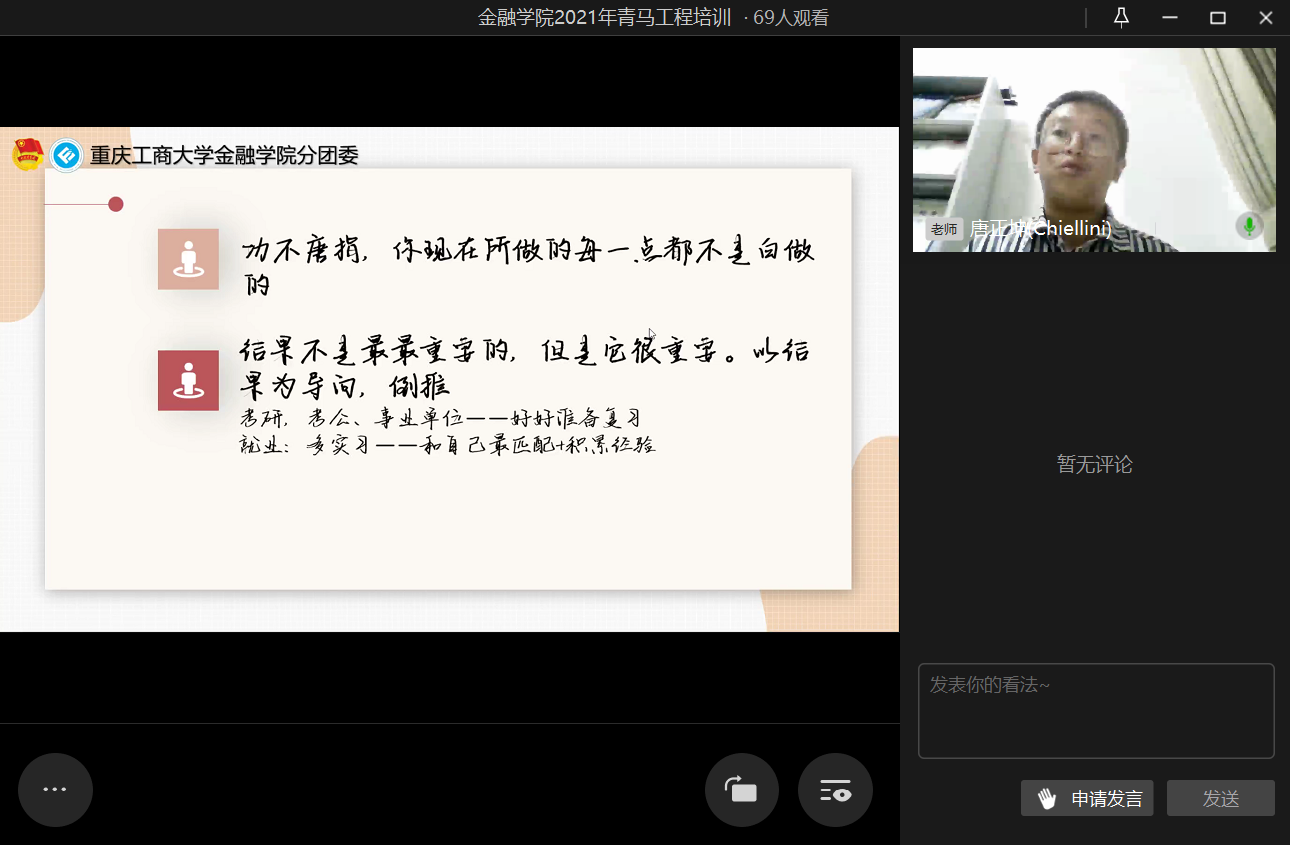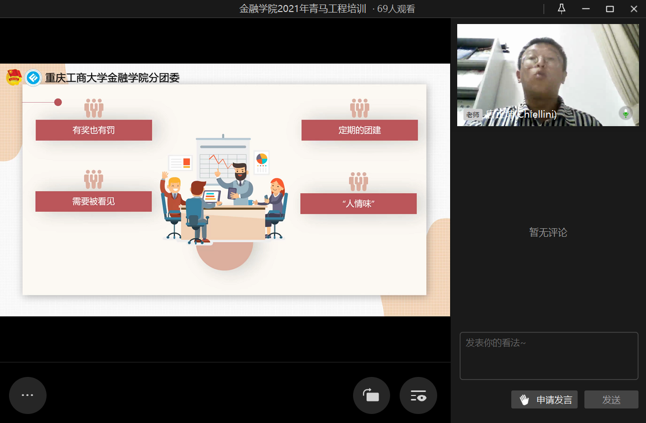 为进一步提高团干部的实践能力和组织协调能力,2021年10月20日21时,太阳成集团tyc第二期青马工程培训之“汲取宝贵经验,赓续前行力量”于企业微信线上直播顺利举行。