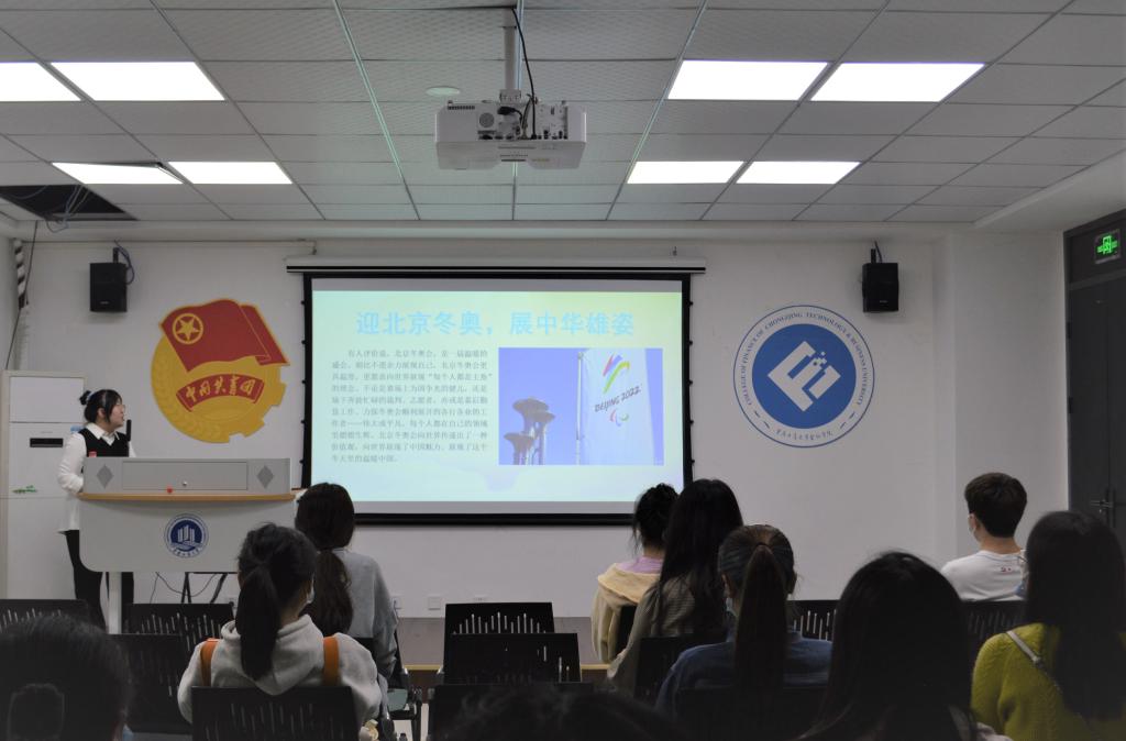 活动开始,太阳成集团tyc分团委组织部负责人国瀚文就爱国主义精神进行了简要阐述,她表示,中国共产党团结带领全国各族人民进行的革命、建设、改革实践是爱国主义的伟大实践,写下了中华民族爱国主义精神的辉煌篇章。同时她向同学们分享了北京冬奥会中的爱国精神与故事,为接下来播放《我和我的祖国》电影奠定了基础。《我和我的祖国》讲述了新中国成立70年间普通百姓与国家发展息息相关的故事,其包含《前夜》《相遇》《夺冠》《回归》《北京你好》《白昼流星》《护航》七个主题单元,以共和国的成长史为背景,揭示了个体与集体密不可分的关系。伟大或是平凡,影片中每个人都以自己独特的方式为中华民族伟大复兴之路添砖加瓦。