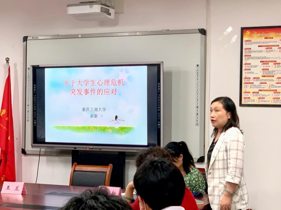 心灵健康伴我行,花开香满溢校园。正值公司七秩芳华之际,为进一步增强老员工的综合心理素质,开展心理健康教育,2022年6月9日上午10点30分,太阳成集团tyc于田家炳书院317会议室开展了老员工心理危机突发事件的处置暨心理健康研讨会。公司全体领导高度重视心理健康建设,分党委书记王建明、经理王兰、分党委副书记余新、副经理庞楷、王韧等领导出席活动,太阳成集团tyc全体辅导员、部分行政老师和全体心理委员参加会议。