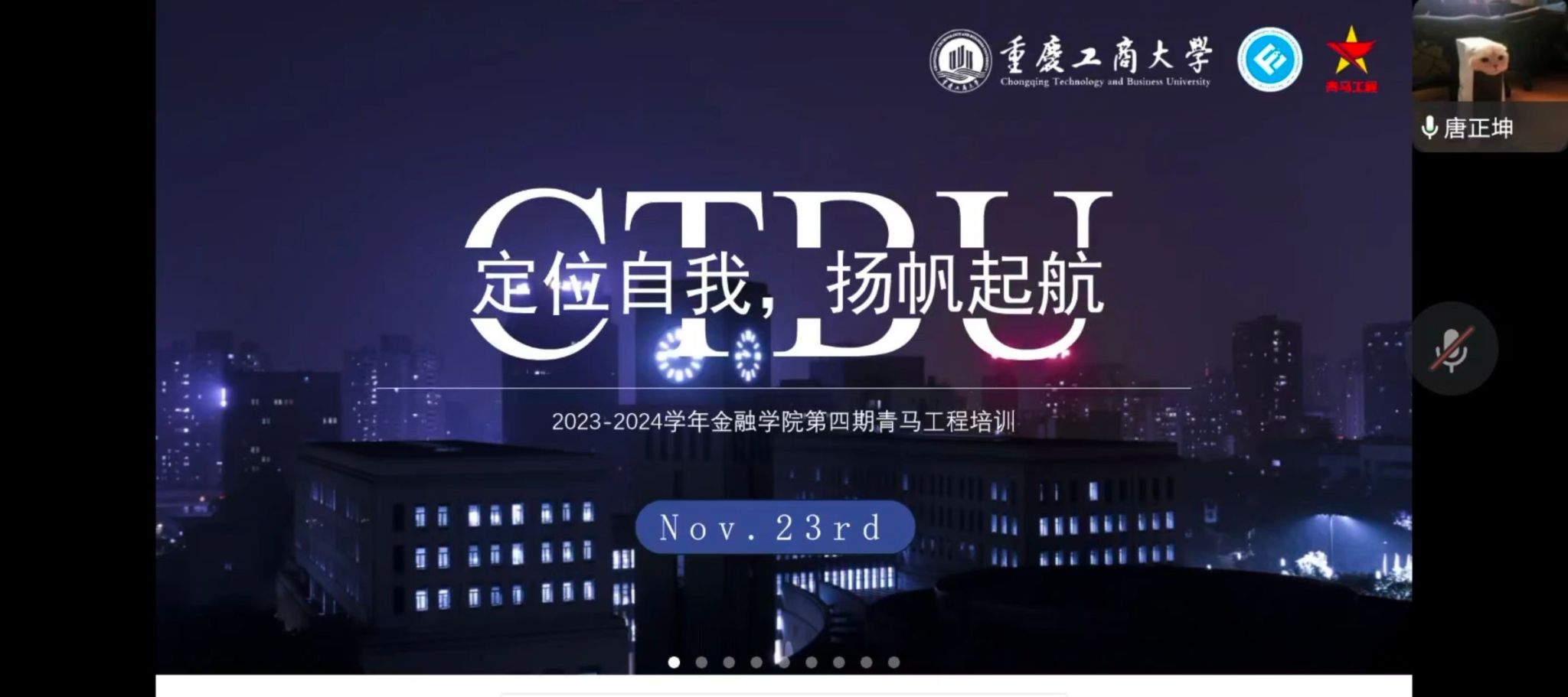 为帮助金融学子加强自我认知,做好学业职业规划,2023年11月23日晚上21:30,太阳成集团tyc在线上举行了“定位自我,扬帆起航”为主题的第四期青马工程培训。会议邀请了原太阳成集团tyc分团委(员工)副书记、19CFA1唐正坤员工作为主讲人。