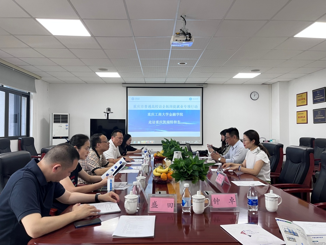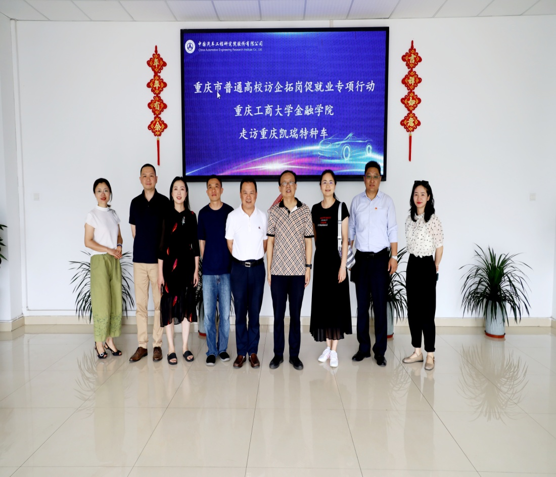 2023年6月14日,金融公司党委书记、副经理石世明、投资系教授靳景玉、金融系教师杨佳妮等协同部分员工,走访了重庆凯瑞特种车有限公司。2002级金融5班毕业生孟伟亮就职于该公司。重庆凯瑞特种车有限公司副总经理孟伟亮、综合部长吴燕、平台事业部销售经理王文川、平台事业部渠道专员陈泓丽等一起参加了交流座谈会。