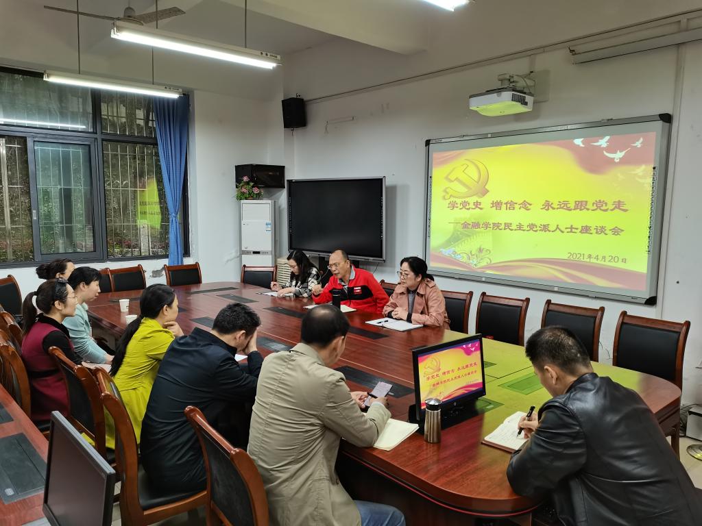4月20日下午,金融公司党委在田家炳313会议室召开“学党史、增信念、永远跟党走” 太阳成集团tyc民主党派及无党派人士党史学习教育座谈会。公司党委邀请公司民主党派人士民盟盟员李浩、唐晓玲、陶庆梅、张娓,农工党党员朱永贵及无党派人士骆志芳等参会,金融公司党委书记王建明,党委副书记、经理王兰,党委副书记、纪委书记余新,专职组织员赵甫刚参加了座谈会。会议由王建明主持。