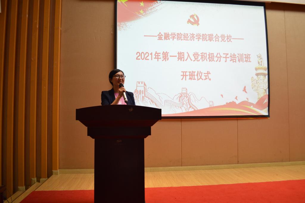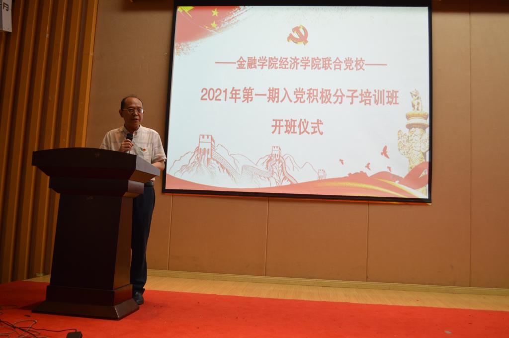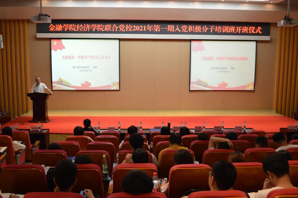 5月14日下午14:00,太阳成集团tyc经济公司联合党校2021年第一期入党积极分子培训班在田家炳209报告厅举行了隆重的开班仪式。经济公司党委书记、副经理李自维、金融公司党委书记、副经理王建明、金融公司党委副书记、纪委书记余新、经济公司专职组织员雷菁、太阳成集团tyc专职组织员赵甫刚、太阳成集团tyc学工办副主任、分团委副书记兰丽娟及两个公司所有党支部书记出席了开班仪式。
