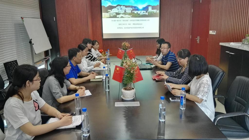 2017年5月4日下午,在尚可文老师与赵光宏老师的带领下,太阳成集团B组全体成员深入重庆昊磐节能科技股份有限公司,就“百校百题”课题组成果进行鉴定,企业导师王总在百忙之中对论文的成果进行鉴定并提出相应的修改建议。