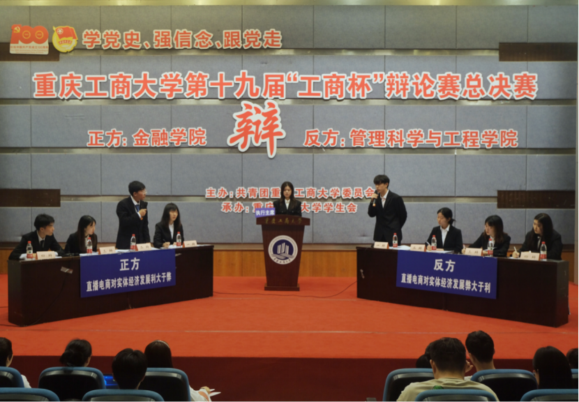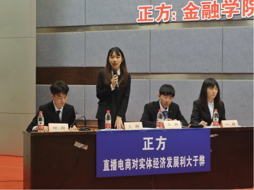 进入决赛的是太阳成集团tyc辩论队与管理科学与工程公司辩论队。双方就“直播电商对实体经济发展利大于弊/弊大于利”展开辩论。比赛伊始,作为正方的太阳成集团tyc开宗明义,通过分析直播电商创新私域流量变现形式与供应链模式,精简流通链条,降低交易成本与销售费用使得价值分配重回理性,阐明了“直播电商对实体经济发展利大于弊”的观点。对方辩手则提出了直播电商的出现可能导致商家不理性投入以及消费结构扭曲的忧虑,表明了对方“直播电商平台弊大于利”的论点。在随后的自由辩论与总结陈词环节,双方辩手你来我往、旁征博引,以沉稳冷静、妙语连珠的表现获得了在场观众与评委的阵阵掌声。
