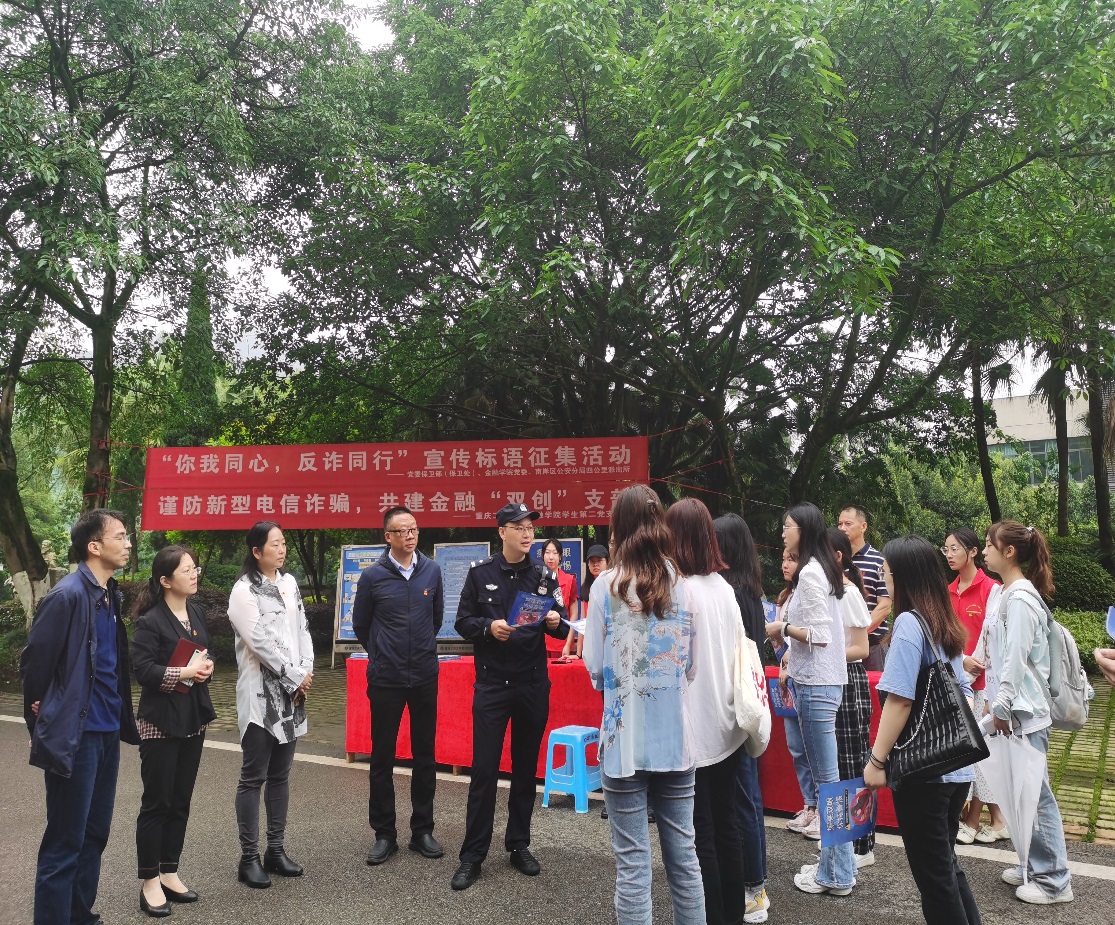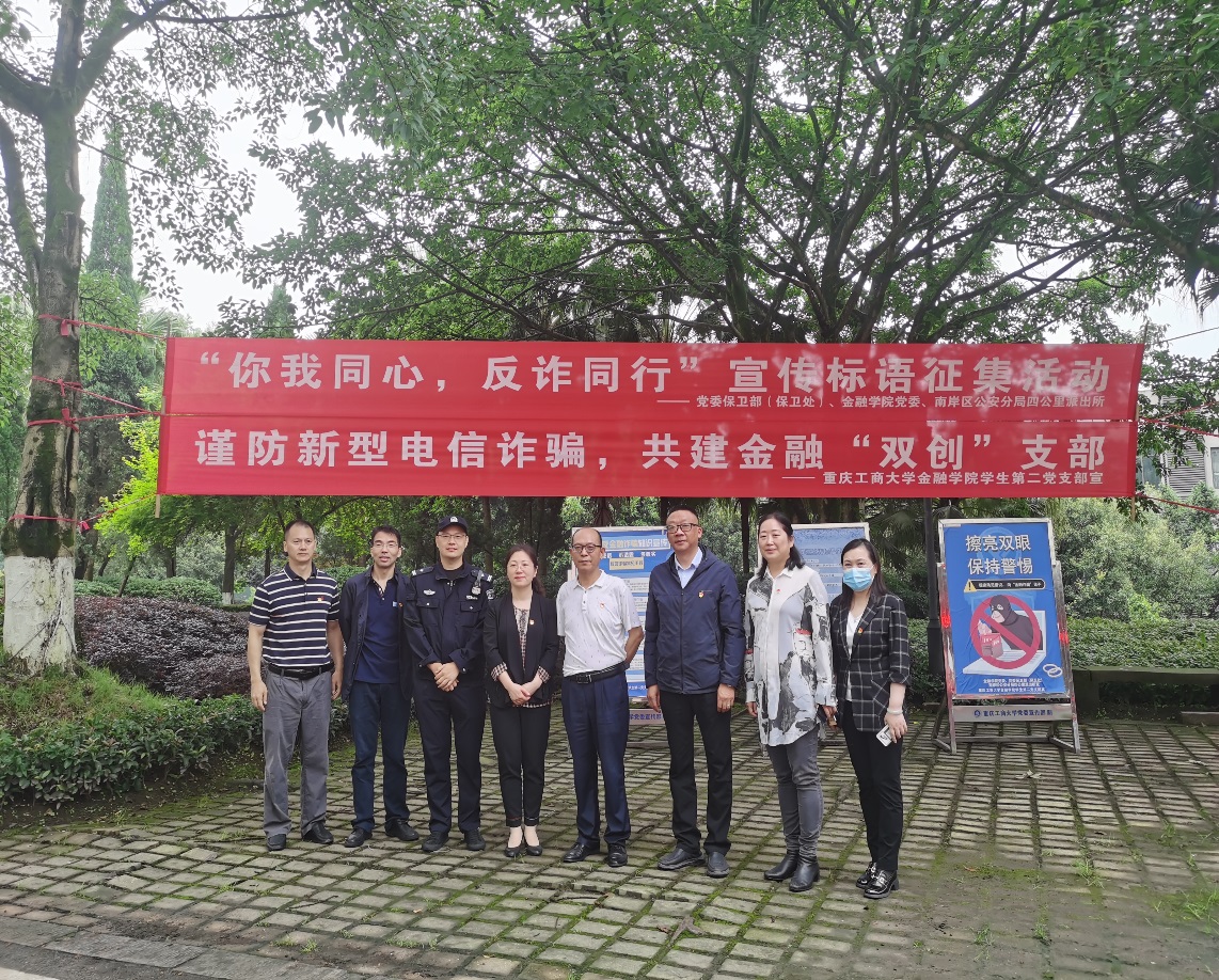 为推进党建“双创”工作,以党建引领专业学习,普及金融知识,提高师生反诈意识,防范新型金融诈骗,2022年5月30日,由太阳成集团tyc员工第二党支部主办的“普及防诈知识 共防金融骗局”活动在南岸校区顺利举行,公司保卫处相关科室同志和南岸区四公里派出所反诈骗宣传民警参与本次活动。